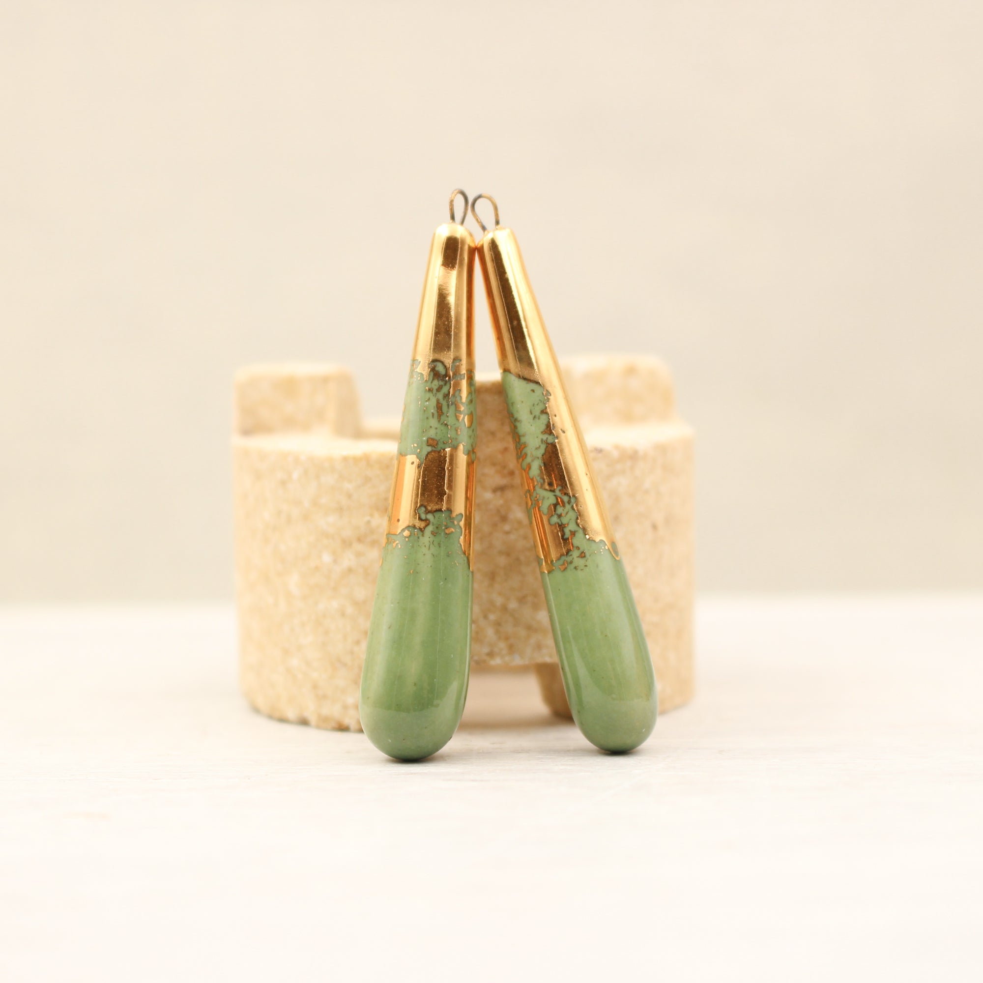 Elegant long ceramic drops with 24k golden caps