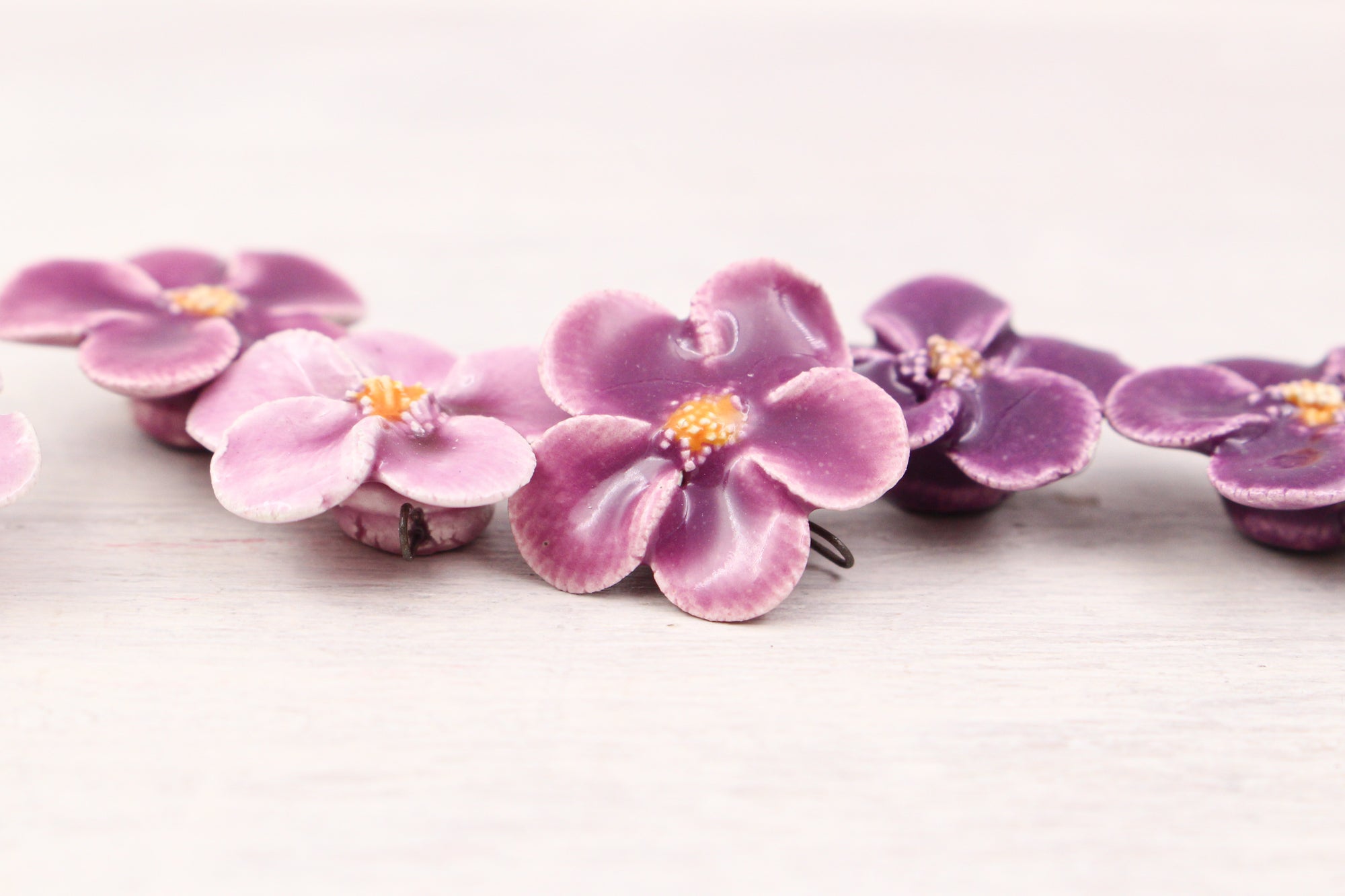 De jolies primevères en céramique, fabriquées à la main dans de supers coloris!